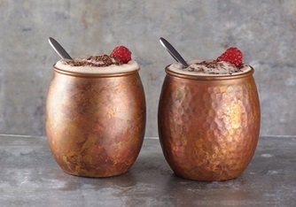 Antique copper drinkware with hammered finish for premium beverage service.
